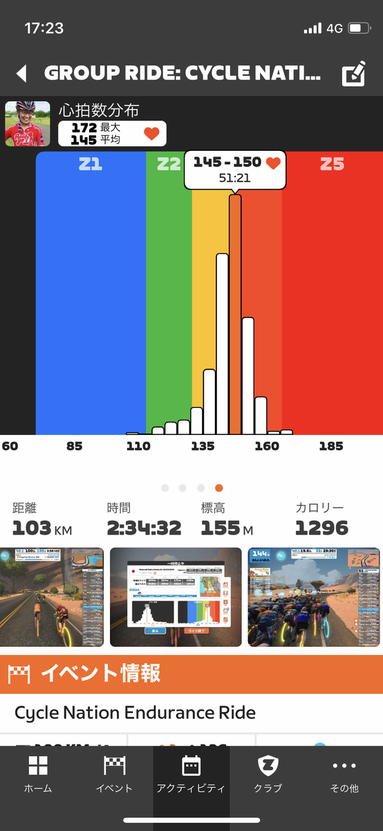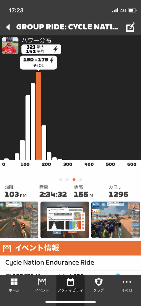 まだ週末準備もあるので、音源整理を中心に。昼ご飯をかき込んでからズイフト練習。今日は長く走りたいから、サイクルネイションの100kmグループライドに参加。