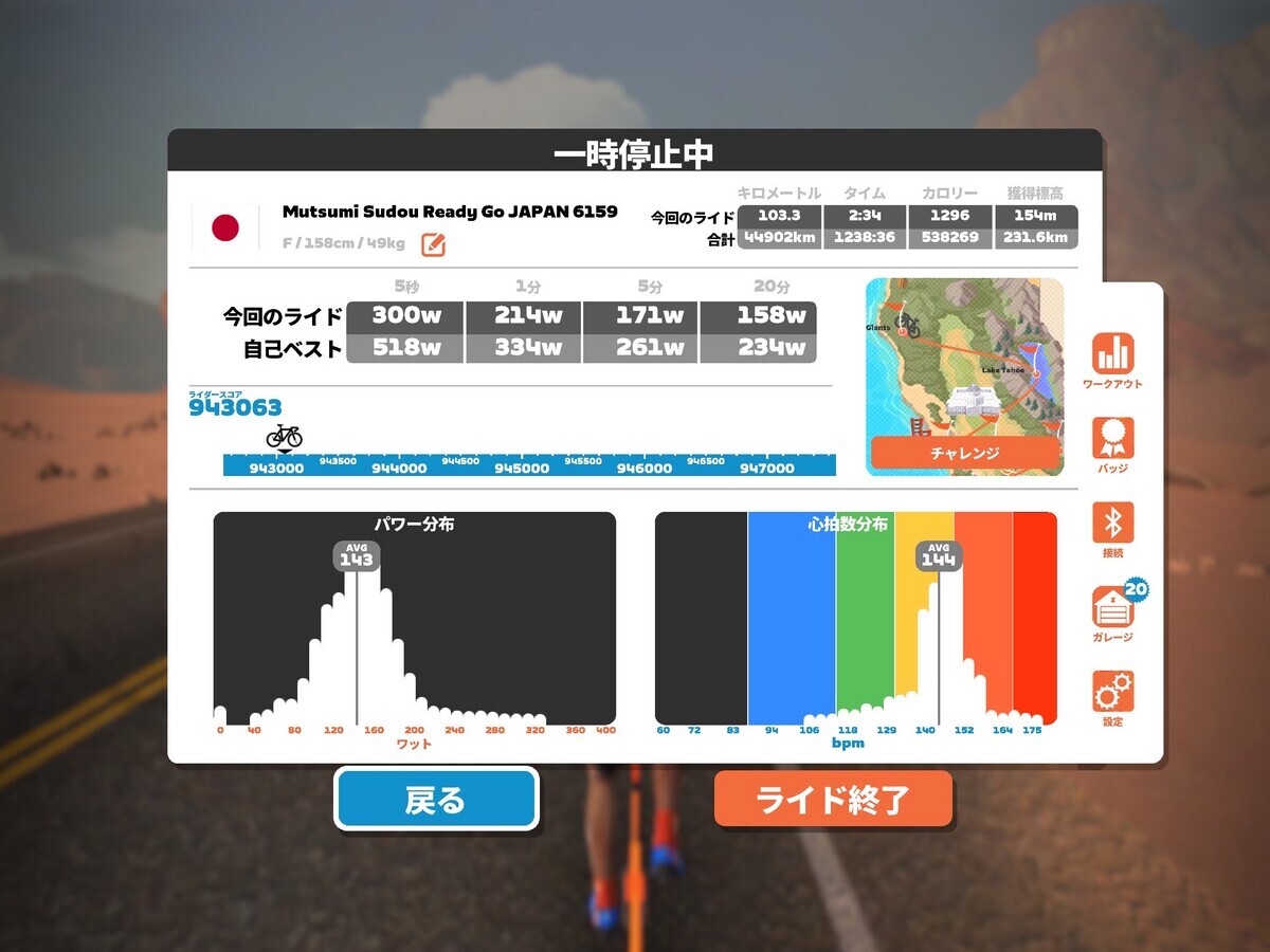 150-175wが中心で100kmだったから、約2時間半で走りきれるペースだおw