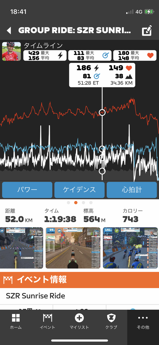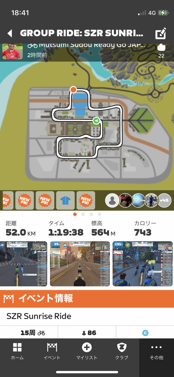 途中にレスト周回もあるので、非常にメリハリあるライドになりました、きつかったけどwww
