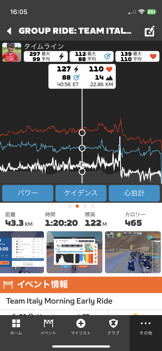 ラスト近くになって急にリーダーが「ミニレースやるよ」とか言い出したので「いやあ、今ナイスペースでサイコー!」とかメッセージしまくってレースさせなかったw
