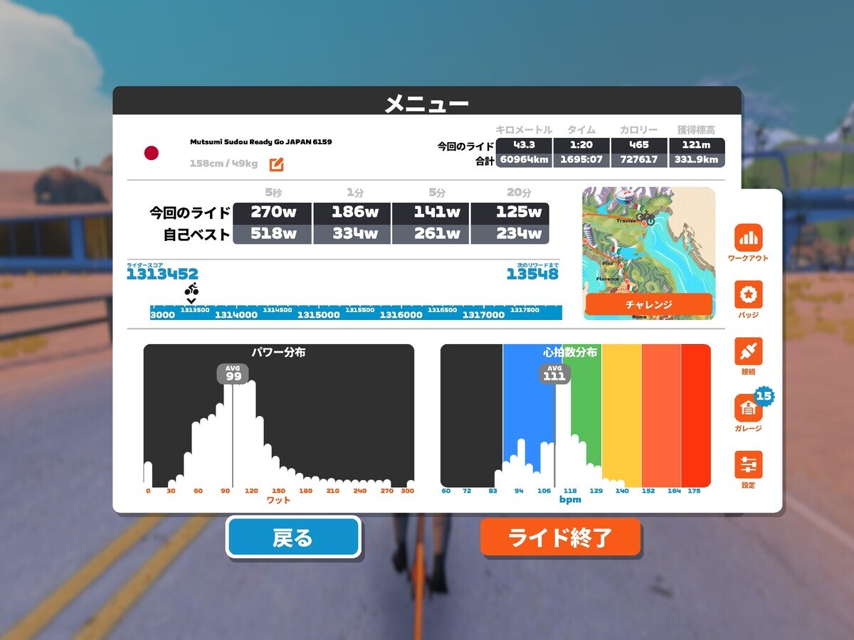 レース無しのおかげで、目的どおりに脚回しのユルユルなライドは完了( ^ω^ )よかったよかった。